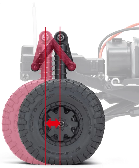 The wheelbase can be changed to 110 or 120mm by changing the length of the spacer on the upper A-link.