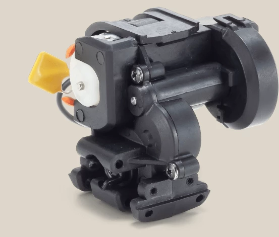 The gearbox features molded covers and includes 6 pinion gears that allow adjustment from ultra-low gearing for steep terrain, through to high-speed gearing for smooth running on flat roads. In addition, the need for annoying backlash adjustments has been negated with the special spacer mounted on the outside of the motor.