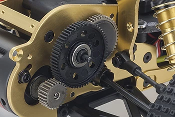 The gearbox is equipped with a slipper clutch that protects the drive system from sudden load changes and is easily adjustable for compatibility with various surface conditions. Sintered alloy 48 pitch gears combined with high impact nylon gears can deal with the current power technologies.