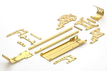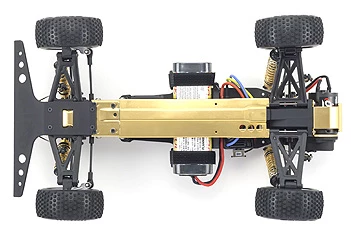 A total of 15 key gold anodized aluminum components that were “Option House” upgrades in the original such as main chassis, shock stays, side plates, and motor guard are included as standard.
