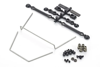 Simple design of the aluminum backbone-style chassis realizes high rigidity. 6061T6 aluminum alloy is used on the main chassis, shock towers and plates for superior strength and corrosion resistance. Countersunk screws reduce the number of nuts used and produce a flat finish.