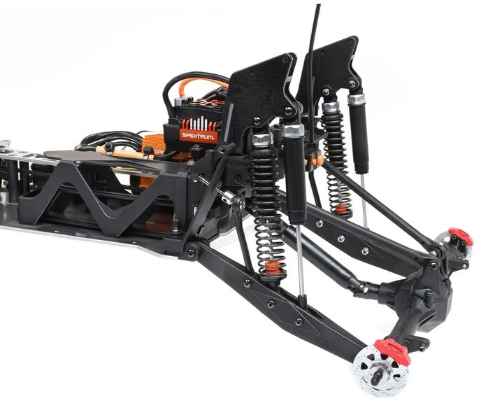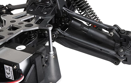 | Scale Details Secondary shock with faux cooling reservoirs, fire extinguishers, Magnaflow exhaust system, upper LED light bar, lower LED light bar, LED headlights, fuel cell, faux sway bar, brake calipers/rotors, side mirrors, and more. | Updated Steering System The steering servo mount and steering bell cranks have been re-designed for added durability. |