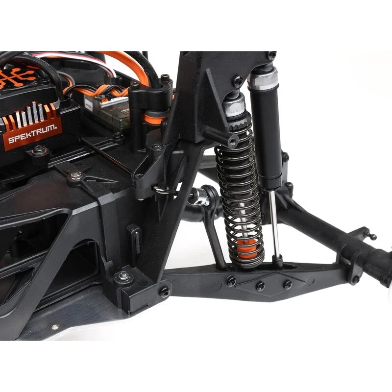 | The Full-Throttle Freedom of AVC® Technology The receiver’s built-in AVC® (Active Vehicle Control®) traction control system works behind the scenes, making hundreds of throttle and steering adjustments per second, so more of the motor’s power is translated into ballistic speed and acceleration instead of just flying dirt. The patent pending AVC system adds a level of performance that simply cannot be found with any vehicle from any manufacturer other than Horizon Hobby. Like traction control in your full-scale vehicle, you can activate or deactivate the system on the fly and adjust the level of stability based on driving conditions. Any RC vehicle can go fast and with AVC you can go faster while maintaining optimum stability in all driving conditions. | OFFICIALLY LICENSED Every weekend off-road racing driver, Casey Currie’s feet are touching dirt and the gas pedal. His career has taken him all over the world with a highlight being his threepeat at the Baja 1000 in 2017, 2018, and 2019. Full-scale U4 race trucks are a unique breed. Not only are they expected to cruise at 90MPH across the desert, but also have the torque and driveline strength to get over rock formations that look impossible to navigate. One reason Casey Currie and his U4 race truck works so well with the Rey platform was the featured independent suspension up front and solid axle in the rear. Of course with Losi, drivers get as much detail as possible while preserving the performance and durability the Rey platform is known for in the RC racing community. The combination is a one-way ticket to victory after victory, bred for the desert and ready to impress. |