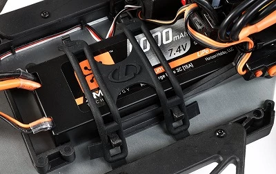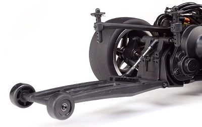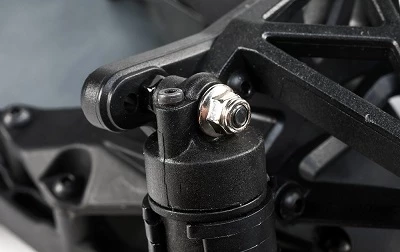 | Elastomer Battery Straps and Adjustable Battery Position Fine tune the position of your battery with the addition of elastomer battery straps and make your battery changes quick and easy. No more messing with clunky hook and loop. Simply slap your battery in, pull across the strap and hook it. | Oil-filled Internal limited Coil-Over Spring Shocks These shock absorbers help keep the car incredibly stable and so you can maintain total control on even the toughest drag strips. Internal limiters help eliminate body roll and keep the car planted to the track. |