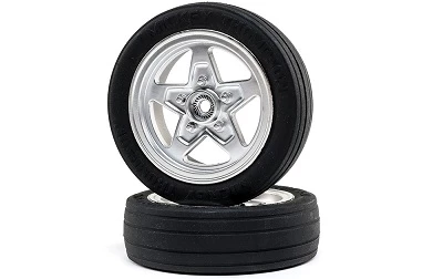 | Mickey Thompson ET Drag Tires The Mickey Thompson licensed rear tires will surely give you a great grip on the road, making sure you have the ultimate traction for the high powered brushless system that is included. | Mickey Thompson Ultra Light Front Runner Tires Mickey Thompson licensed front tires will provide you with plenty of tracking while having lower drag characteristics. |