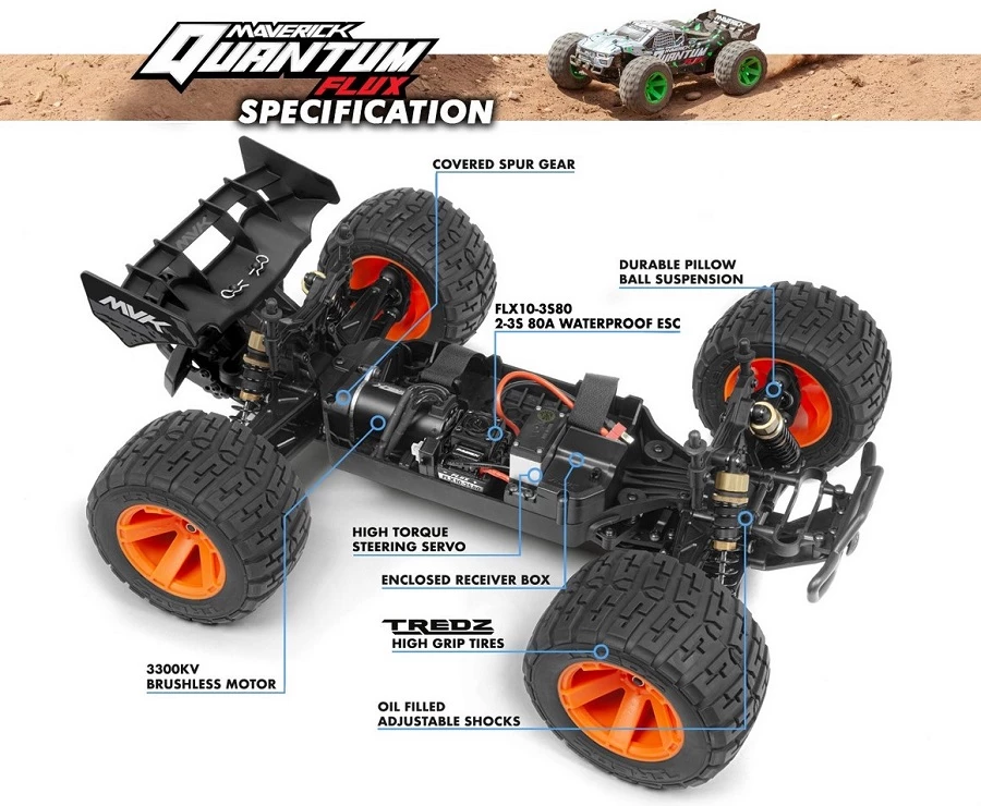 Maverick 1/10 Quantum XT Flux 80A RTR Brushless 4WD Stadium Truck – Blue / Orange