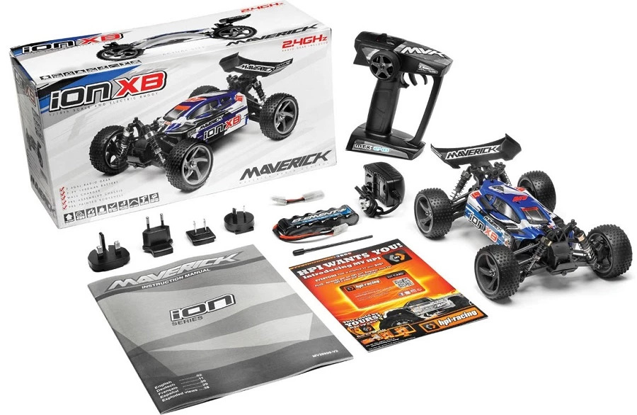 Maverick RC’s reputation for affordable fun continues with the hugely impressive iON XB! This 1/18th scale buggy gives you the thrilling excitement of much larger RC buggies in a package that fits in the palm of your hand! Waterproof electronics, 4WD grip and large off-road tires mean you can turn anywhere you go into your own RC playground!
