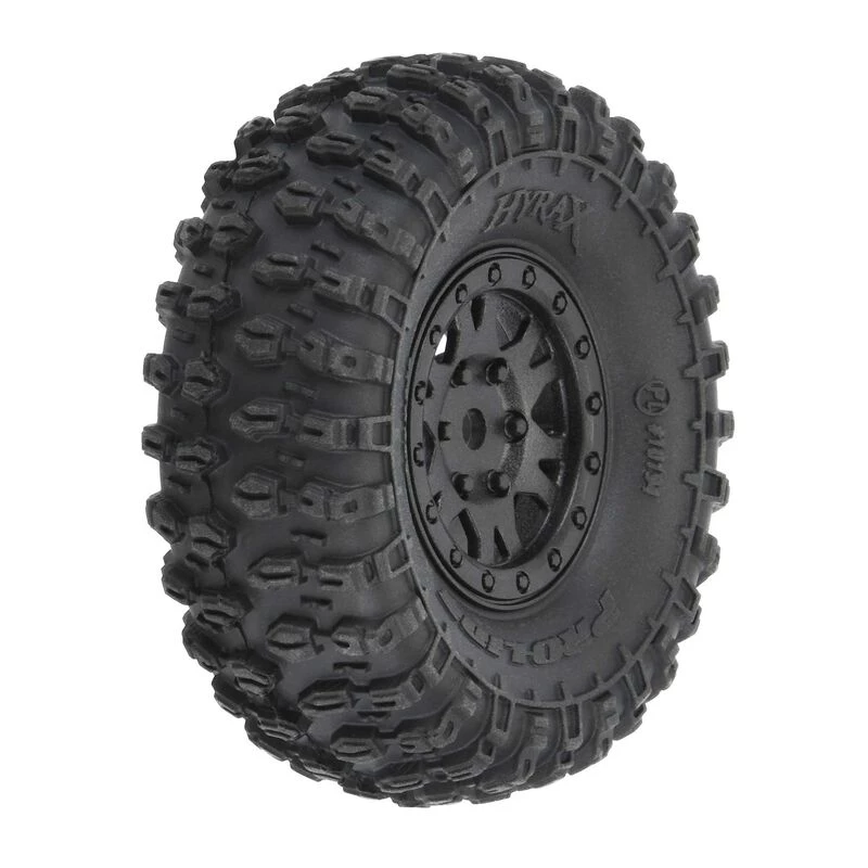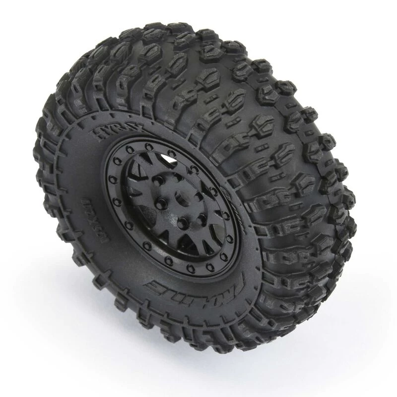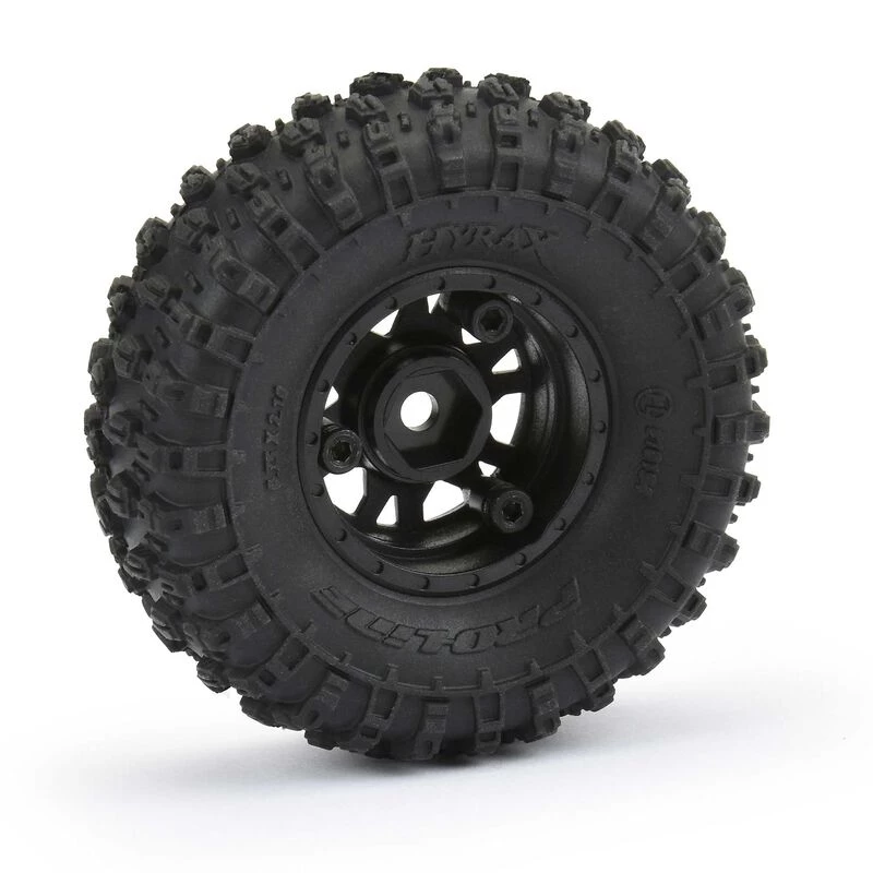 The Hyrax 1.0″ tire comes conveniently pre-mounted to our Mini Impulse Black Internal Bead-Loc 1.0″ Plastic 7mm Hex wheels! Yes, these are true 3-piece Bead-Loc wheels! Just like Pro-Line’s 1:10 size Impulse wheels, these all-new Mini Impulse wheels are designed to not only look scale but are super easy to use by only requiring 3 screws per wheel for mounting tires. The unique 3-piece plastic wheel design bolts together in the back and locks on to Pro-Line’s Hyrax 1.0″ Crawling Tires and also works with many existing 1.0″ tires for the SCX24. If you own a SCX24, then Pro-Line’s new pre-mounted set of Hyrax 1.0″ Tires are a must have! Get your own set today!