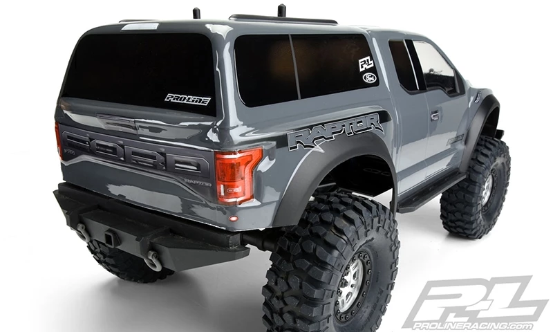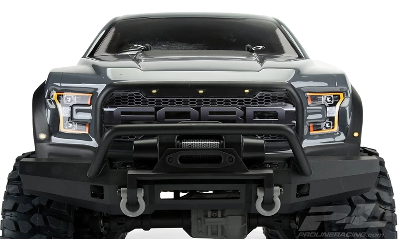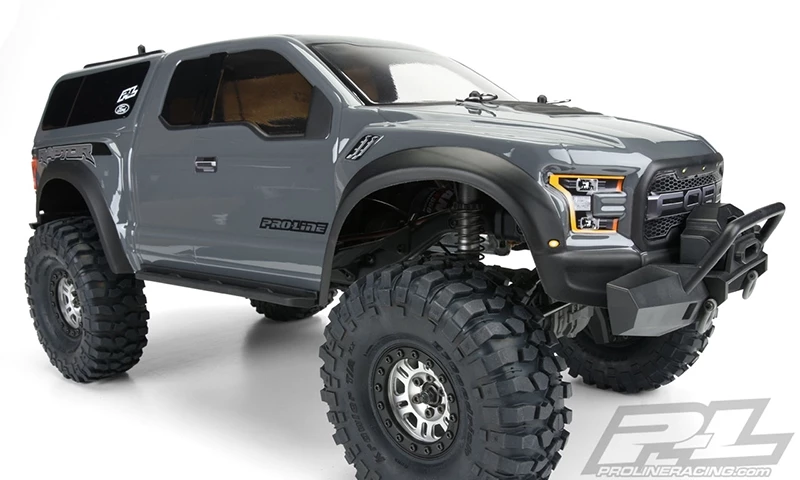 Pro-Line is ready to unleash the officially licensed 2018 Ford F-150 Raptor body for your Traxxas TRX-4 This body will completely transform your Truck into an Ultra Scale modern Raptor Rig perfect for Rock Crawling. The details from the full-size 2017 Raptor have been faithfully recreated and is designed to drop right onto the stock 12.8″ wheelbase TRX-4 This Pro-Line body is much lighter than the stock TRX-4 body for lower center of gravity and improved crawling performance. Window masks, Paint-then-peel overspray film and fully licensed detailed stickers are included to finish off the look. Raise the bar and get your own Pro-Line 2017 Ford F150 Raptor Body for your TRX-4 now!
