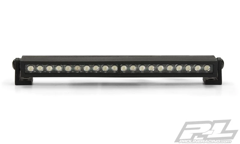 This is a 4 LED Light Bar Kit. Pro-Line is proud to introduce a new 4 LED Light Bar Kit with real, working LED Lights! The 4 Light Bar comes with 20 LED Light bulbs pre-wired with a 12 long cable that can plug directly into your receiver for power. The Lights are rated for 6V to 12V power, so you have the option to plug directly into a 3S lipo power source for Super-Bright LED Light! The LED Lights are housed in a durable Black Nylon housing branded with a P-L logo and includes the mounts and hardware you need to do a custom install on your Rock Crawler, Rock Racer, 1:8 MT and 1:10 MT vehicle. The 4 LED Light Bar has also been designed to mount directly to the PRO627800 Overland Scale Roof Rack for an integrated scale appearance. Night Crawling has become the new cool thing to do with your scale rig, dont get left in the Dark! Get Pro-Lines new 4 Super-Bright LED Light Bar Kit for your truck today!