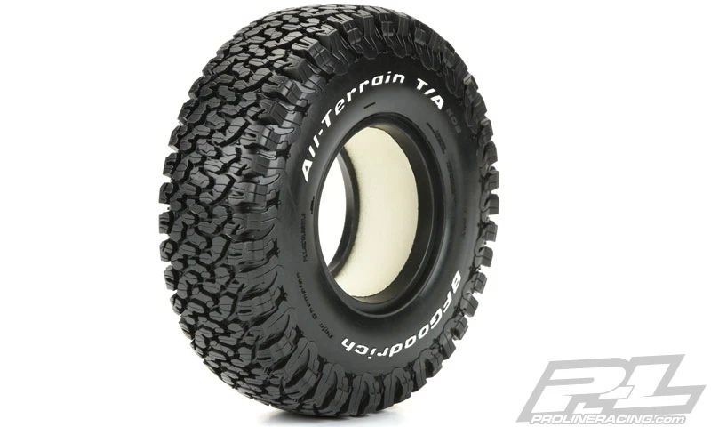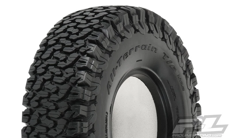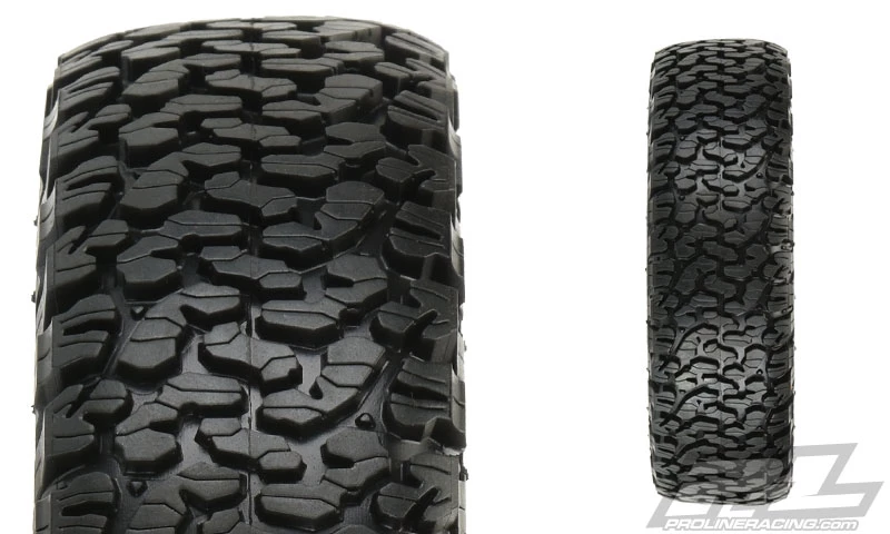 This is a pair of BFGoodrich® KO2 1.9 tires. Pro-Line is proud to announce a partnership with the leading full-size Off-Road tire manufacturer – BFGoodrich®! This collaboration started with the introduction of the full-race BFGoodrich® Baja T/A KR2 tires and continues with the extremely popular BFGoodrich® All-Terrain KO2 tires available in Pro-Lines legendary G8 compound! Details from the full-size race All-Terrain tire have been recreated to give your truck the ultimate in scale look and multi-surface performance. Known for extreme off-road traction and awesome street performance in the full scale world, the BFGoodrich® All-Terrain KO2 tire features an iconic layout of densely packed tread blocks with a large number of tread sipes that will give your rig improved traction on any terrain! Pro-Line engineers decided that the KO2 tire needed to be 4.35 tall x 1.42 wide for the perfect balance of Scale looks and performance! The all-new BFGoodrich® All-Terrain KO2 1.9 tires from Pro-Line are a must have. Get yours today!