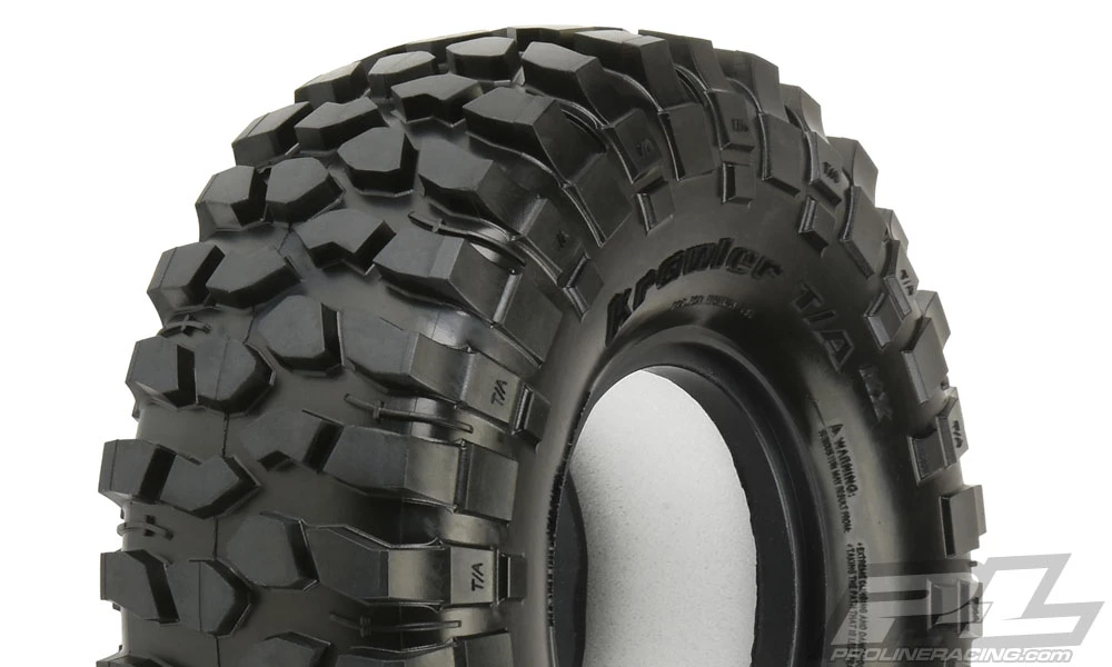 The Krawler T/A KX features an extra deep tread design with a tread pattern that combines deep, aggressive independent blocks with solid sidewall lugs. Pro-Lines re-creation of the Krawler T/A KX comes in at 4.75″ tall x 1.75″ wide for the perfect balance of Scale looks and performance! The all-new BFGoodrich® Krawler T/A KX 1.9″ tires from Pro-Line are a must have. Get yours today!