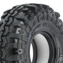 This is a pair of Interco® Super Swamper® TSL SX 1.55″ Crawler Tires. Under official license from Interco® Tire Corporation, Pro-Line is proud to announce our first ever tire for 1.55″ size wheels: the legendary Super Swamper® TSL SX! With “almost scale” not being acceptable and access to Interco’s® design data, Pro-Line’s engineering staff has reproduced the original Super Swamper® in a scale configuration matched by none. The new 3.85″ tall by 1.45″ wide Class 0 tire is perfect for those ultra-scale 1.55″ wheel rigs begging for matching scale tires combined with unmatched rock crawling performance.