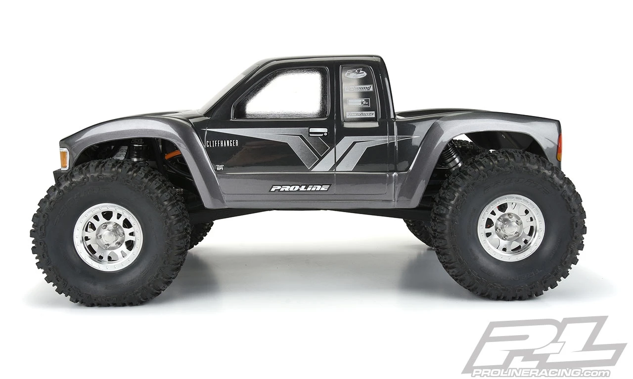 This is a Cliffhanger High Performance Clear Body for 12.3″ Crawlers. Introducing the all-new Cliffhanger High Performance Rock Crawling competition body from Pro-Line that was developed specifically for 12.3″ wheelbase Class 2 and Class 3 vehicles. Scale competition crawling is a growing part of the overall rock crawling movement and Pro-Line’s Cliffhanger body provides everything that these competitors have been asking for. The Cliffhanger features a pinched front end and a dove-tailed rear end for maximum tire clearance while still maintaining a true-to-scale appearance. The Cliffhanger is made from a single piece of crystal-clear polycarbonate to save on weight and has a molded-in drop-down bed to make room for you to add your favorite scale accessories. Everything on the Cliffhanger body has been optimized for maximum crawling performance while still complying with the letter and spirit of the competition crawling rules. Don’t get stuck behind on the rocks, get your very own Cliffhanger body today!