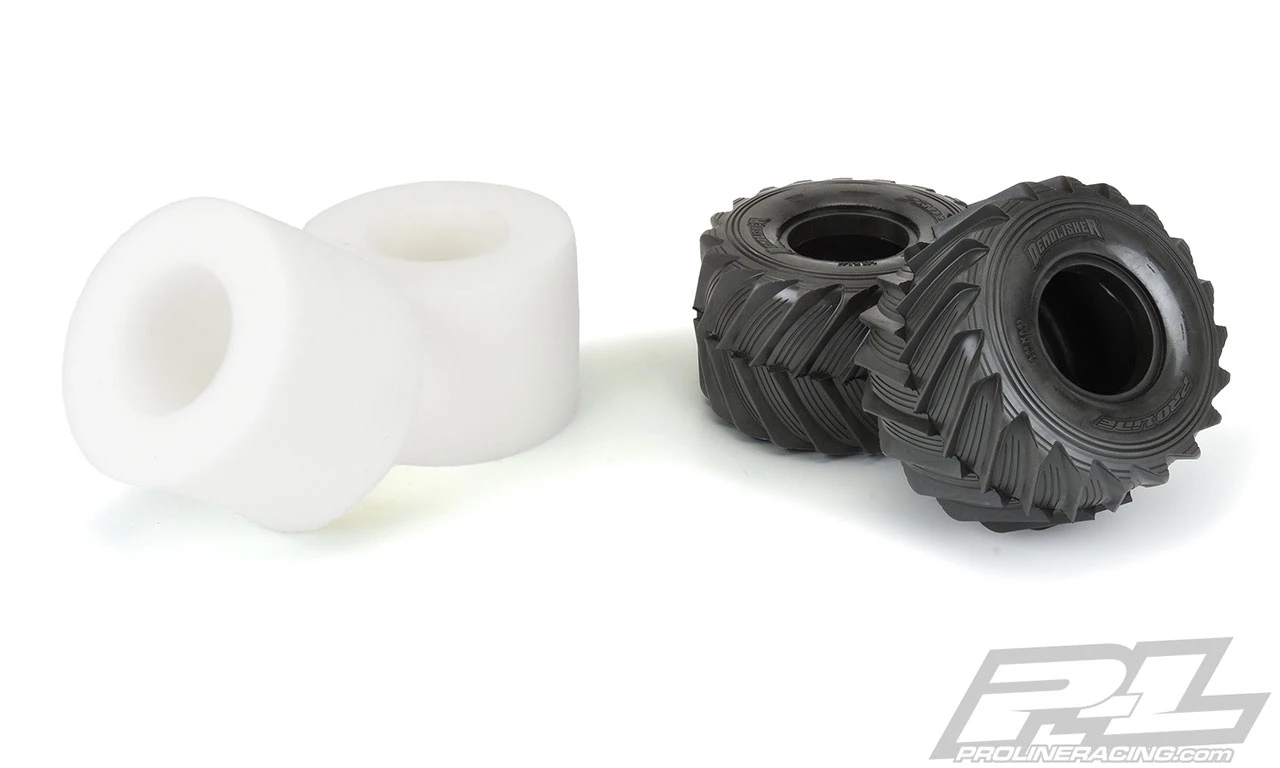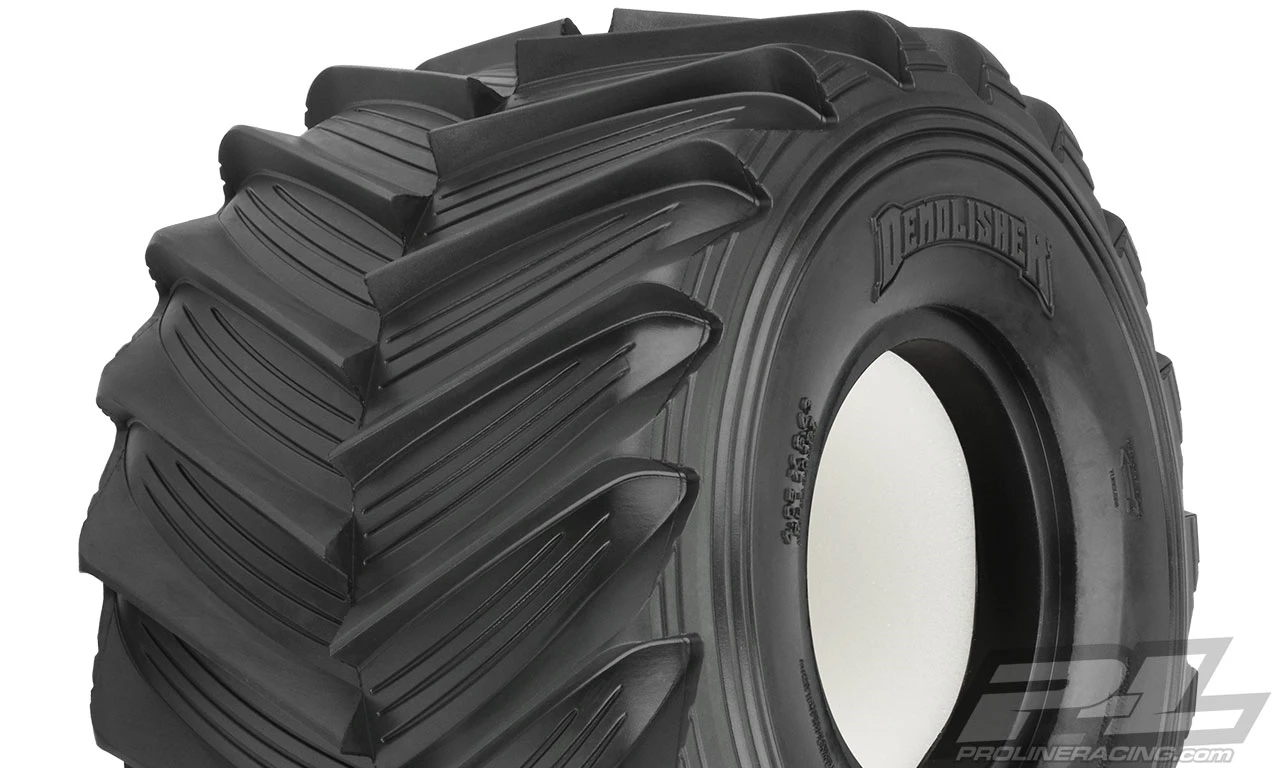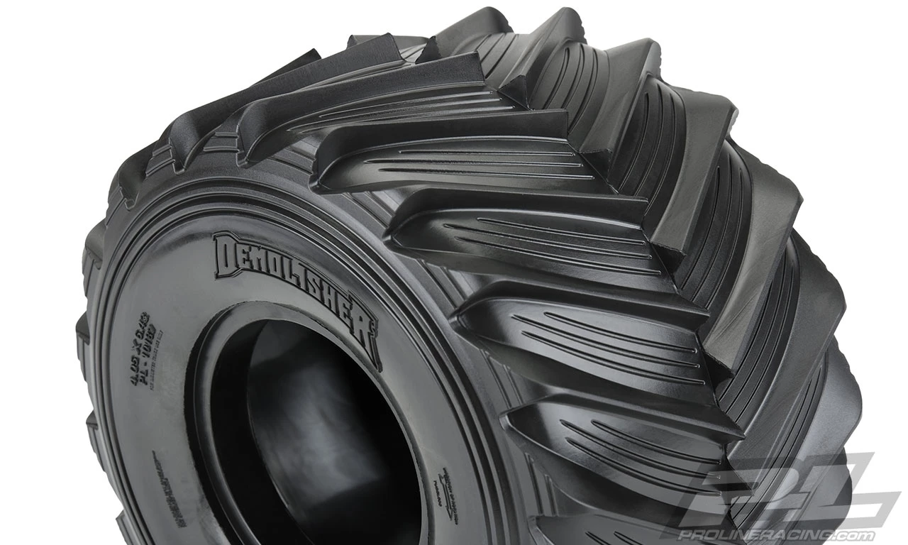 This is a pair of Demolisher Tires for the Losi® LMT. Losi® has unleashed the most exciting solid axle monster truck ever produced with the all-new LMT (Losi® Monster Truck) and Pro-Line already has you covered with high-performance Demolisher tires made specifically for your new truck! The Demolisher tires are a direct fit onto the stock 2.6″/3.6″ LMT wheels and feature extremely sharp tread that will bite into any surface. Just like full-size monster truck tires that have been modified and grooved for maximum performance, the Demolisher tires feature scale grooves in between the chevron style tread for exceptional scale realism. As you should expect from Pro-Line, the all-new Demolisher tire is made from soft and sticky rubber that will give your LMT maximum wheelie-popping traction. Demolish the competition with Pro-Line’s new Demolisher LMT tires! Get your own set today!