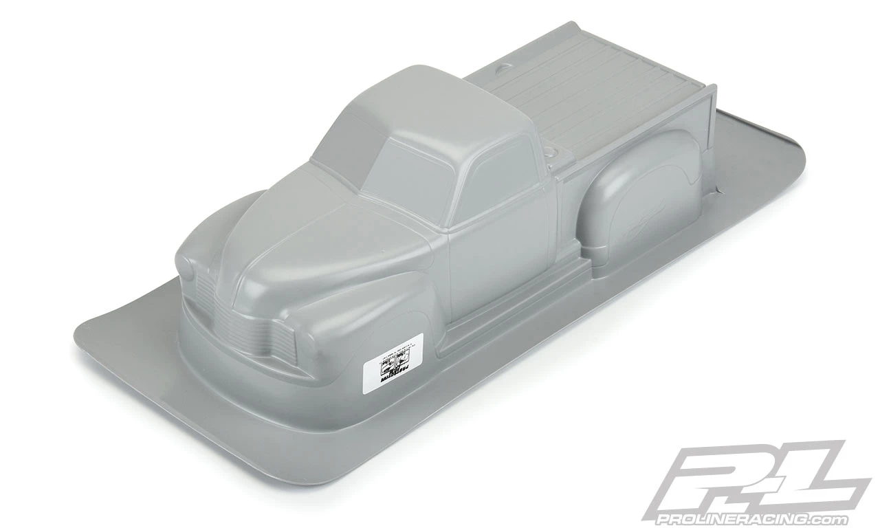 This is the Early 50’s Chevy® Tough-Color (Stone Gray) Body for the Stampede® and Granite. Pro-Line welcomes you back to the past of automobiles with the release of the Early 50’s Chevy® made from the new Tough-Color Stone Gray polycarbonate. Pro-Line’s classic car enthusiasts captured the overall essence of the Early 50’s Chevy® and made it available in 1:10 scale format for the Stampede® and Granite. Complete with detailed grill, headlights, body molding trim, and that overall distinct Early 50’s look, all classic truck enthusiasts will come to appreciate the overall styling the 50’s have to offer. The Tough-Color polycarbonate is made from gray material, so you never have to worry about paint peeling or chipping off. Realistic window stickers are also included!