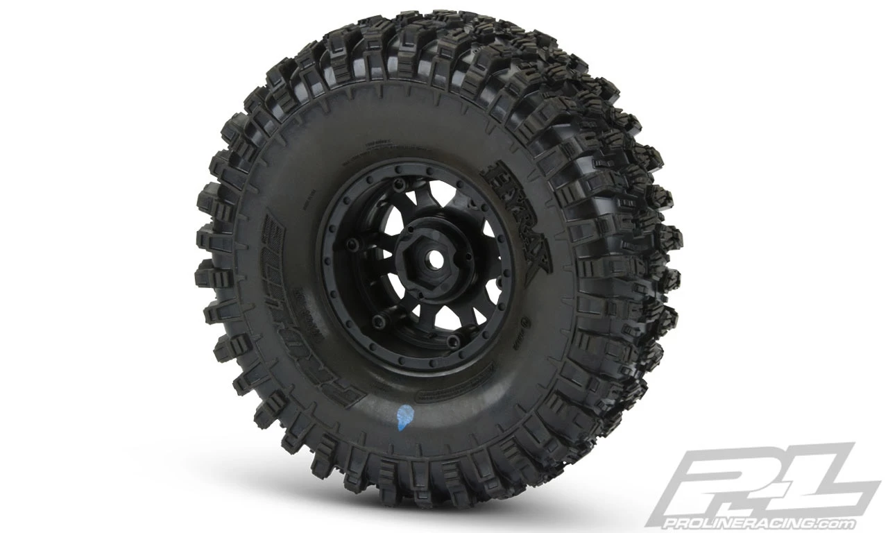 The future of 1.9″ Tire Performance has arrived with Pro-Line’s Hyrax Tire mounted to Impulse Black/Silver Wheels! Designed for maximum grip on the toughest terrain, the Hyrax tire is ready for anything your Scale Adventure might throw at you. The Hyrax features an aggressive and open tread pattern with each tread block containing multiple Sipes for incredible tread flex. The highly detailed connected tread on the sidewall of the Hyrax extends out for unmatched side-hilling performance. The Hyrax also features futuristic stepped tread blocks that create even more forward gripping edges that dig into slick rock like no other scale tire Pro-Line has produced to date! The Hyrax is made from Pro-Line’s Legendary G8 material, so you know it provides performance you can depend on.