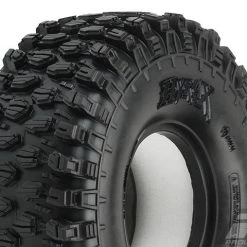 Hyrax 1.9 Rock Crawling Tires. The future of 1.9 Tire Performance has arrived with Pro-Lines all-new Hyrax Tire! Designed from the ground up for maximum grip on the toughest terrain, the Hyrax tire is ready for anything your Scale Adventure might throw at you. The Hyrax features an aggressive and open tread pattern with each tread block containing multiple Sipes for incredible tread flex. The highly detailed connected tread on the sidewall of the Hyrax extends out for unmatched side-hilling performance. The Hyrax also features futuristic stepped tread blocks that create even more forward gripping edges that dig into slick rock like no other scale tire Pro-Line has produced to date! The Hyrax is made from Pro-Lines Legendary G8 material, so you know it provides performance you can depend on.