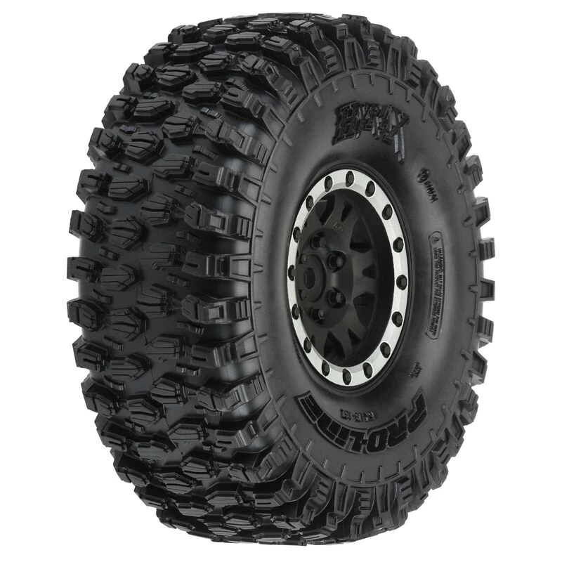 The future of 1.9″ Tire Performance has arrived with Pro-Line’s Hyrax 1.9″ Predator Tire mounted to Impulse Black/Silver Wheels! Designed for maximum grip on the toughest terrain, the Hyrax tire is ready for anything your Scale Adventure might throw at you. The Hyrax features an aggressive and open tread pattern with each tread block containing multiple sipes for incredible tread flex. The highly detailed connected tread on the sidewall of the Hyrax extends out for unmatched side-hilling performance. The Hyrax also features futuristic stepped tread blocks that create even more forward gripping edges that dig into slick rock like no other scale tire Pro-Line has produced to date! The Hyrax is made from Pro-Line’s Super Soft Predator material, so you know it provides the maximum performance possible.