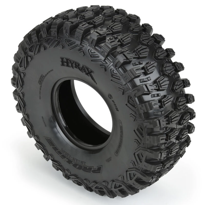 The future of U4 Rock Racing Tire Performance has arrived with Pro-Line’s all-new Hyrax Tire! Designed from the ground up for maximum grip on the toughest terrain, the Hyrax tire is ready for anything the Race might throw at you. The Hyrax U4 features an aggressive and open tread pattern with each tread block containing multiple Sipes for incredible tread flex. The highly detailed connected tread on the sidewall of the Hyrax extends out for unmatched side-hilling performance. The Hyrax also features futuristic stepped tread blocks that create even more forward gripping edges that dig into slick rock like no other scale tire Pro-Line has produced to date! The Hyrax is made from Pro-Line’s Legendary G8 material (PRO1019514) and Predator (Super Soft) (PRO1019503), so you know it provides the performance you can depend on. The Hyrax U4 features a Short Course style 2.2″/3.0″ mounting bead making it perfect for the new crop of U4 racers like the Losi® Lasernut (LOS03028).