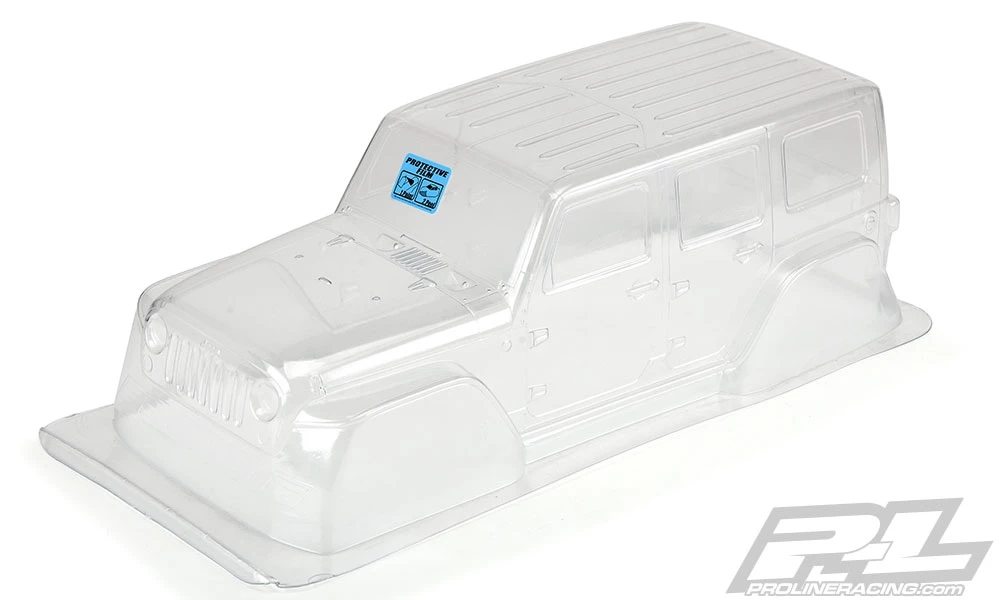 Window masks, Paint-then-peel overspray film and fully licensed detailed stickers are included to finish off the look. Get your Jeep on with Pro-Lines new Jeep Wrangler Unlimited Rubicon Body for TRX-4!