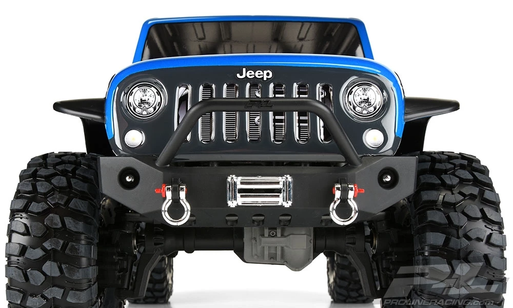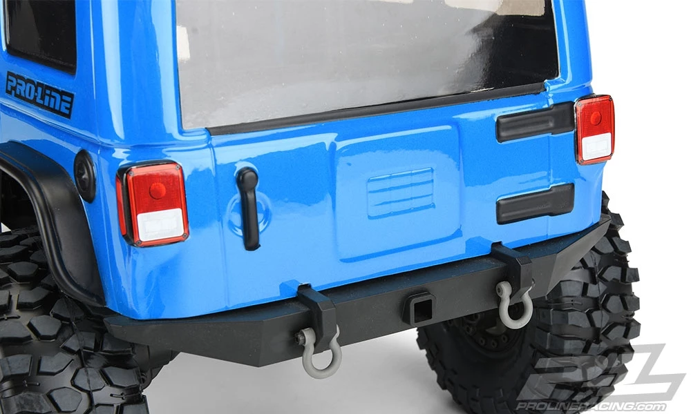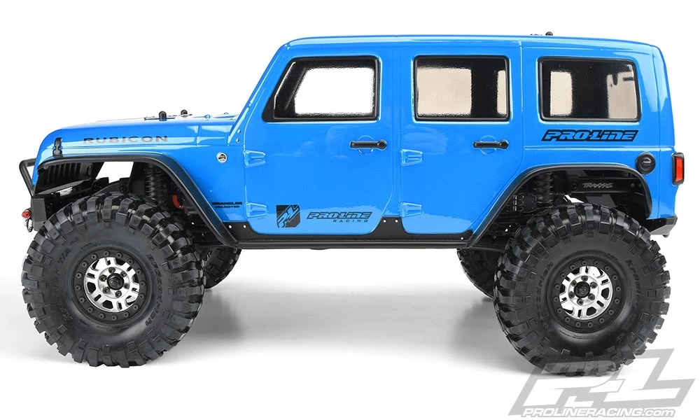 Pro-Line is ready to unleash the officially licensed Jeep Wrangler Unlimited Rubicon body for your Traxxas TRX-4! This body will completely transform your Truck into an Ultra Scale modern Jeep Rig perfect for Rock Crawling. The details from the full-size Jeep Wrangler Rubicon have been faithfully recreated and feature a few molded in full-size style upgrade parts like rock sliders and tube fenders. This Pro-Line body is much lighter than the stock TRX-4 body for lower center of gravity and improved crawling performance. The Jeep Unlimited Rubicon body also features improved clearance front and rear allowing you to tuck in the bumpers for massively improved approach and descent angles to get you up and over obstacles easier than ever before!