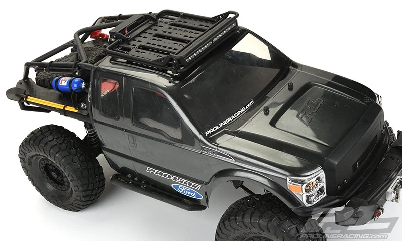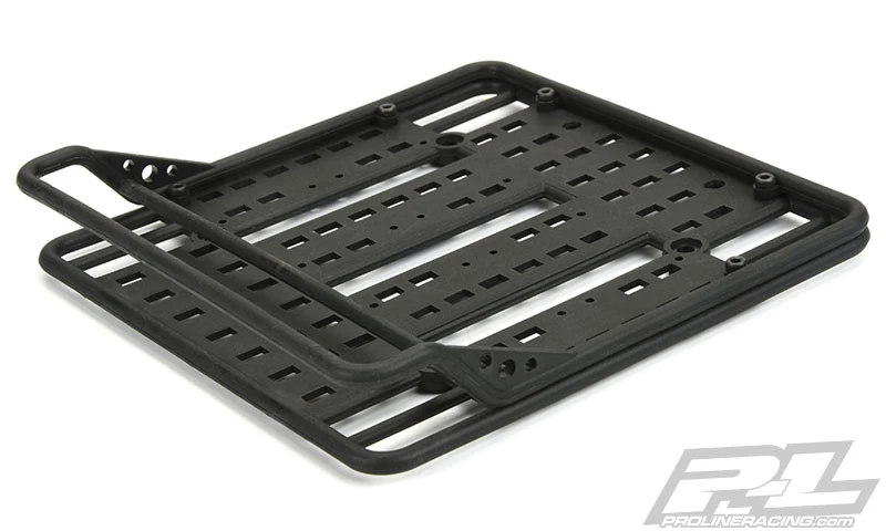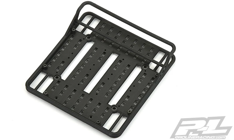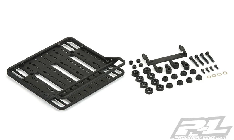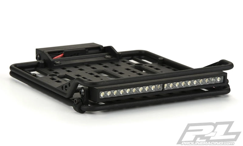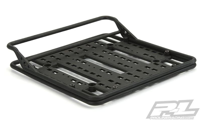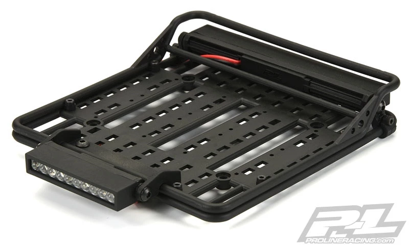 This is the Overland Scale Roof Rack. Pro-Line is proud to introduce the new Overland Scale Roof Rack that integrates with Pro-Line’s PRO627600 2 LED Light Bar and PRO627601 4 LED Light Bars! The Overland Roof Rack is made from durable Black Nylon and is a two-piece tubular roof rack design that is perfect for adding scale accessories and scale detail to your rig. The included hemispherical roof rack mounts allow the Overland to be mounted on body and cage surfaces that are not completely flat for easy installation. The Overland Roof Rack features many cutouts covering the bottom that will allow scale straps and ties to be used anywhere you want to strap down any of your favorite scale accessories. To finish off the scale appearance, you have the option to purchase the 2 and 4 LED Light Bar separately and mount them directly to the Overland Roof Rack for a professional and integrated look! Need to add Imaginative Scale looks to your rig? Look no further than Pro-Lines new Overland Scale Roof Rack!