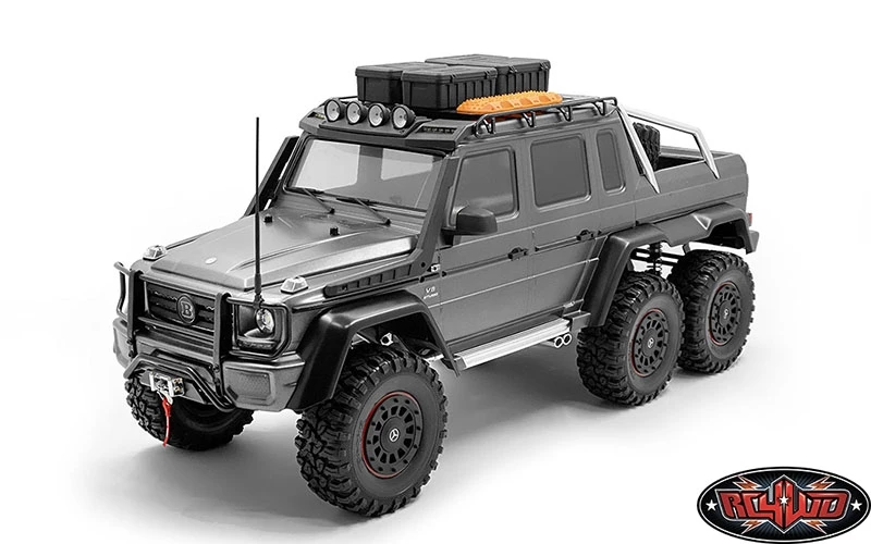 Shown installed on Traxxas Mercedes-Benz G 63 AMG 6×6 with Boomerang Snorkel for Traxxas Mercedes-Benz G 63 AMG 6×6 (VVV-C0915), Clarity Roof Light Bar for Mercedes-Benz G 63 AMG 6×6 (VVV-C0918), Adventure Steel Roof Rack for Mercedes-Benz G 63 AMG 6×6 (VVV-C0921), Emblem Grille for Mercedes-Benz G 63 AMG 6×6 (VVV-C0919), CB Antenna for Mercedes-Benz G 63 AMG 6×6 (VVV-C0920) and RC4WD MAXTRAX Vehicle Extraction and Recovery Boards 1/10 (Safety Orange) (Z-S0612) for example (Not Included)
