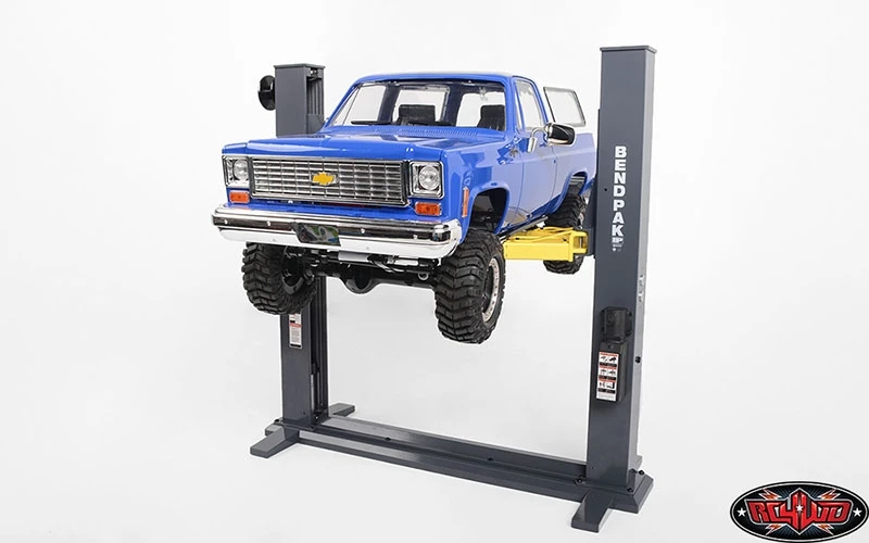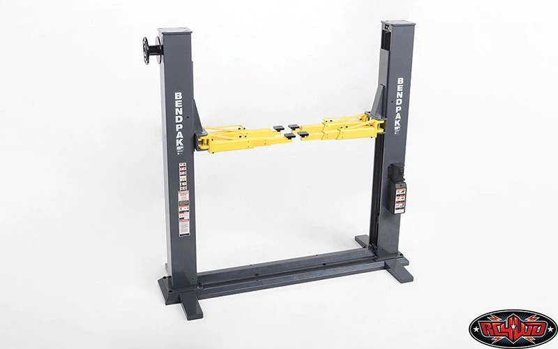 Licensed 1/10 BendPak XPR-9S Two-Post Auto Lift. These have been Officially Licensed by the BendPak company and are only available from RC4WD and our Dealers. Complete with battery and fully functional allowing for that ultimate scale garage look.