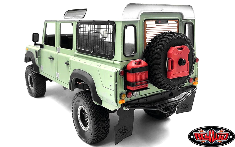 Shown installed on RC4WD Gelande II “LWB” RTR w/D110 Body Set (Z-RTR0032) with Rear Window Defroster Decal for Gelande II (D90/D110) (VVV-C0618), Complete Windows Guard Set for Gelande II D90/D110, Rear Mud Flap for Land Rover Defender D90, Rear Tube Bumper for Gelande II (D90/D110) (VVV-C0456), Mud Thrashers 1.55″ Scale Tires (Z-T0100), 1/10-1/14 D90 Small Yellow Light (Detailed) (VVV-C0099), 1/10-1/14 D90 Small Red Light (Detailed) (VVV-C0097), 1/10 Tire Holder (D90/D110) (VVV-C0249) and 1/10 Fuel Cell (Red) (VVV-C0699) for example (Not Included)