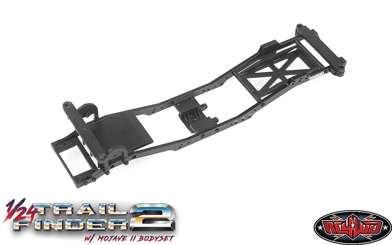 The RC4WD 1/24 Trail Finder 2 Chassis is comprised of CNC machined aluminum chassis rails, forming a rigid platform. The suspension mounts and cross members are outfitted for durable capabilities.