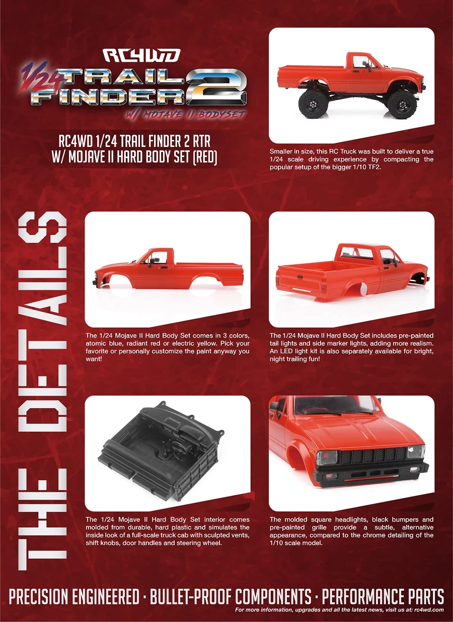 1x RC4WD 1/24 Trail Finder 2 RTR W/ Mojave II Hard Body Set (Red)