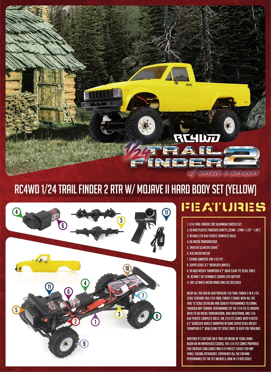 1x RC4WD 1/24 Trail Finder 2 RTR W/ Mojave II Hard Body Set (Yellow)