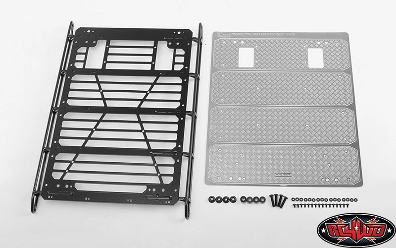 Command Roof Rack w/ Diamond Plate & 4x Square Lights for Traxxas TRX-4 Mercedes-Benz G-500 (Style A) (VVV-C1000)