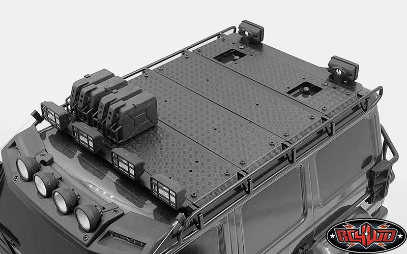 Command Roof Rack w/ Diamond Plate & 2x Square Lights for Traxxas TRX-4 Mercedes-Benz G-500 (Style A) (VVV-C0999)