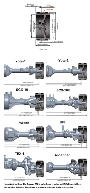 Note: Shown installed with RC4WD Atturo Trail Blade M/T 1.7″ Scale Tires (Z-T0151) for example (Not Included).