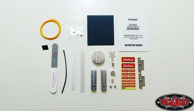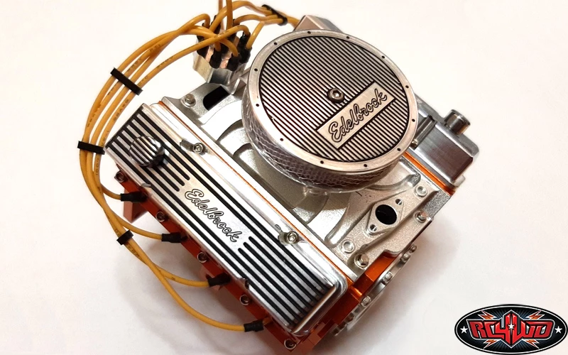 This is the all new Licensed RC4WD Edelbrock 1/10 Scale V8 Motor Dress up Kit by REC. These have been Officially Licensed by Edelbrock, designed and manufactured in the USA exclusively for RC4WD by Rogue Element Components and are only available from RC4WD and our Dealers.