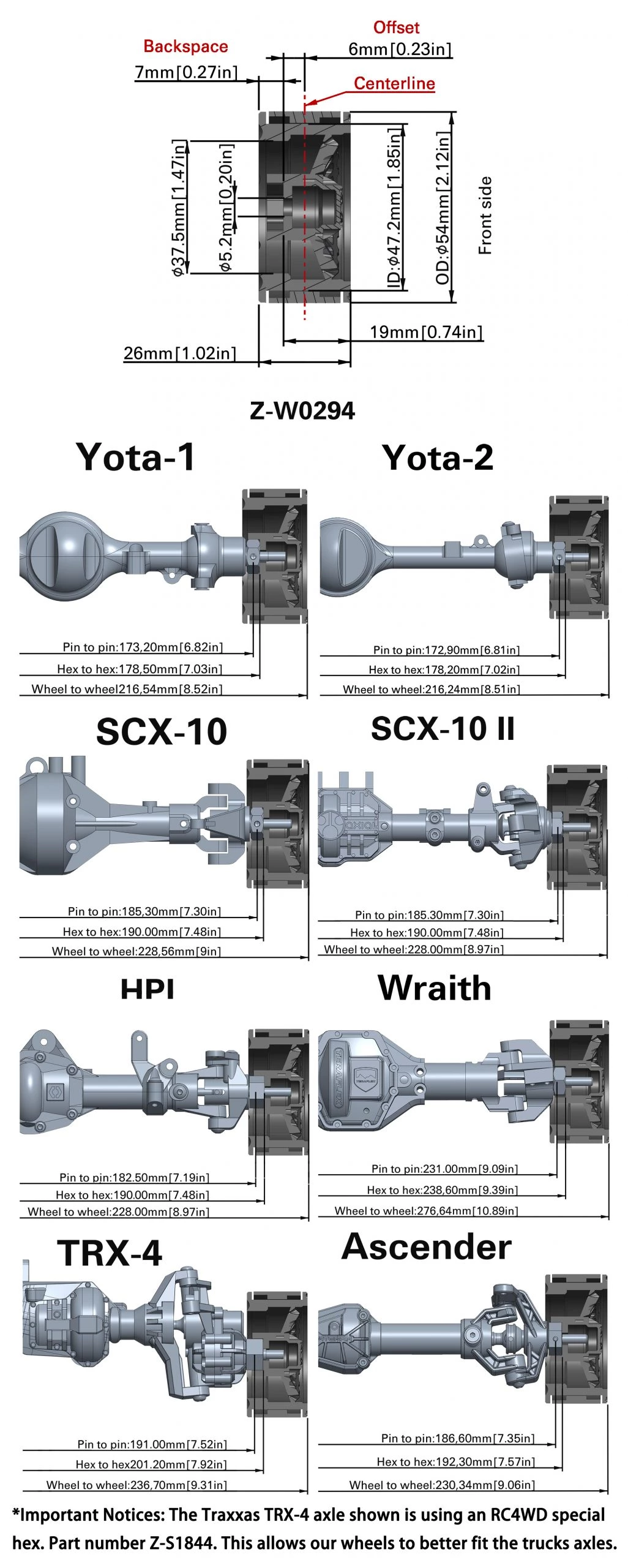 Shown installed with RC4WD Atturo Trail Blade BOSS 1.9″ Scale Tires (Z-T0172) for example (Not Included)