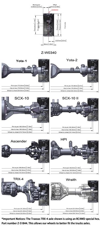 Shown installed with RC4WD BFGoodrich Mud Terrain T/A KM3 1.9″ Tires (Z-T0192) for example (Not Included)