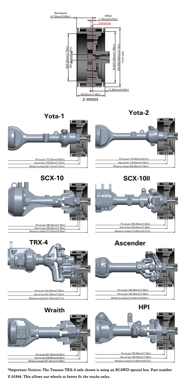 Installing on Traxxas TRX-4 trucks requires the RC4WD 12mm Wheel Hex Conversion for Traxxas TRX-4 (Z-S1844)