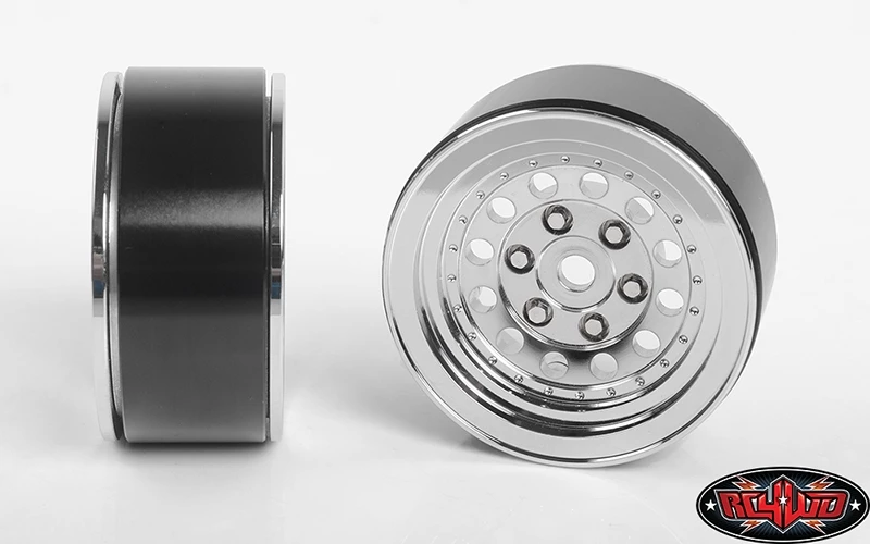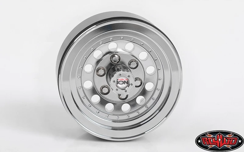 Give a classic look to your scale RC truck by mounting the first Officially Licensed aluminum RC wheel from ION. These RC4WD ION Style 71 1.9″ Beadlock Wheels feature a slick chrome design with the look that you might find on a truck in the 80’s, only in 1/10th scale. As always, you can expect that we went the extra mile to have as much detail as possible, including installing the scale ION Alloy emblem sticker inside the wheel hub to add to the style on these RC wheels. We designed this internal beadlock wheel to mount using 6 Socket Head Cap Screws M2.5 X 8mm in the back of the wheels. This makes the wheel look great from the front and back by hiding the screws that hold it together. The front of the wheel has 6 Miniature Scale Hex Bolts (M2.5 X 4mm) to mimic lug bolts, however, these are not functional as the 12mm mounting hub is machined into the wheels. To finish it off, these also have a scale hub with a 5mm nut inside it along with a tool to help mount them to the truck.