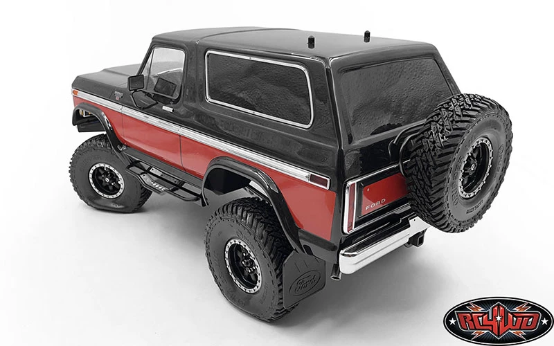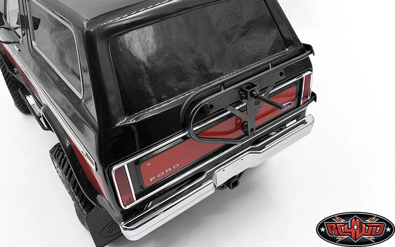 Shown installed on Traxxas TRX-4 ’79 Bronco Ranger XLT with Aluminum Rear Side Window Trim for Traxxas TRX-4 ’79 Bronco Ranger XLT (VVV-C0498), Rear Metal Logo for Traxxas TRX-4 ’79 Bronco Ranger XLT (VVV-C0490), Ranch Side Step Sliders for Traxxas TRX-4 ’79 Bronco Ranger XLT (Black) (VVV-C0514) and Rear Mud Flaps for Traxxas TRX-4 ’79 Bronco Ranger XLT (VVV-C0488) for example (Not Included)