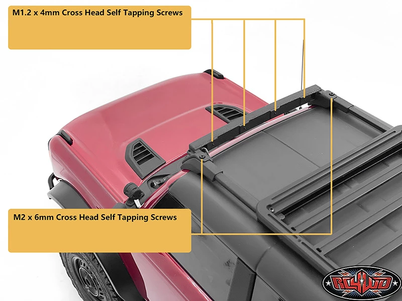 Shown installed on Traxxas TRX-4 2021 Ford Bronco with Grille Insert for Traxxas TRX-4 2021 Ford Bronco (Black) (VVV-C1155), Metal Tube Front Bumper with LED for Traxxas TRX-4 2021 Bronco (VVV-C1254), Roof Rails and Metal Roof Rack for Traxxas TRX-4 2021 Bronco (Style B) (VVV-C1238), LED Roof Lateral Light for Traxxas TRX-4 2021 Bronco (VVV-C1244), LED A Pillar Front Light and Antenna for Traxxas TRX-4 2021 Bronco (VVV-C1247), Side Extension Ladder for Traxxas TRX-4 2021 Bronco (VVV-C1249), LED Light Bar for Roof Rack and Traxxas TRX-4 2021 Bronco (Round) (VVV-C1241), Rad 1.9″ Aluminum Internal Beadlock Wheels (Black) (VVV-C1225) and Black Offroad Obstacle for example (Not Included)