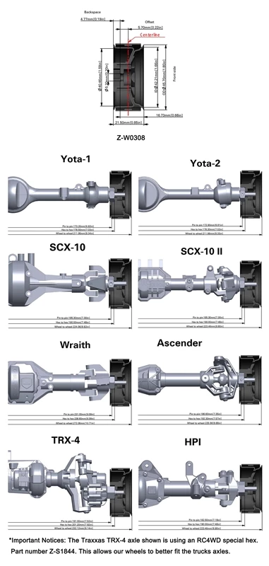 Installing on Traxxas TRX-4 trucks requires the RC4WD 12mm Wheel Hex Conversion for Traxxas TRX-4 (Z-S1844)