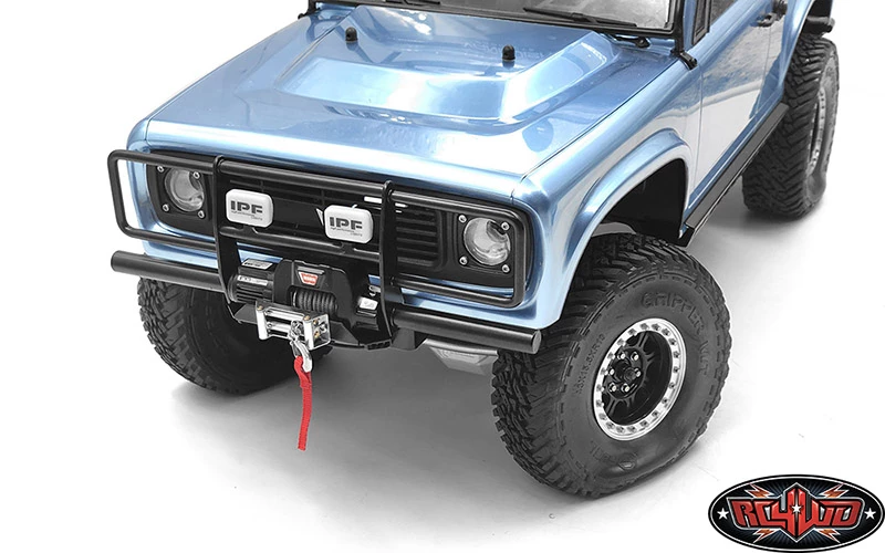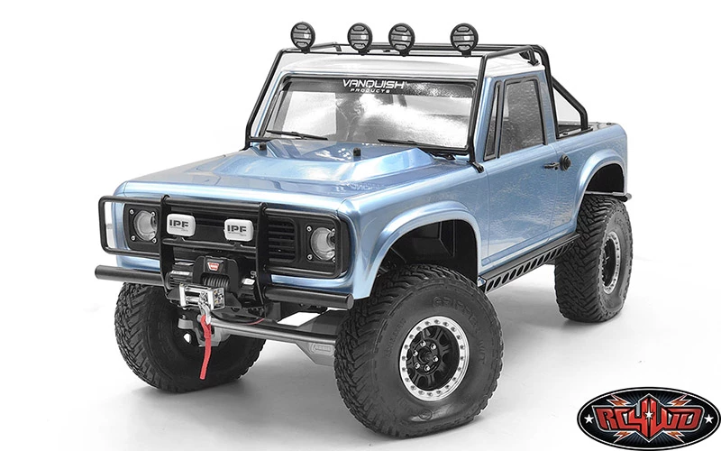 Shown installed on Vanquish VS4-10 Pro Rock Crawler Kit w/ Origin Half Cab Body with the IPF Lights of Oxer Steel Front Winch Bumper w/ IPF Lights for Vanquish VS4-10 Origin Body (Black) (VVV-C0948), Exterior Steel Roll Cage w/ Lights for Vanquish VS4-10 Origin Halfcab Body (Black) (VVV-C0966), Steel Tube Roll Bar for Vanquish VS4-10 Origin Halfcab Body (Black) (VVV-C0968), Shirya Steel Side Sliders for Vanquish VS4-10 Origin Body (Black) (VVV-C0960) and RC4WD 1/10 Mini Warn 9.5cti Winch (Z-S1571) for example (Not Included)
