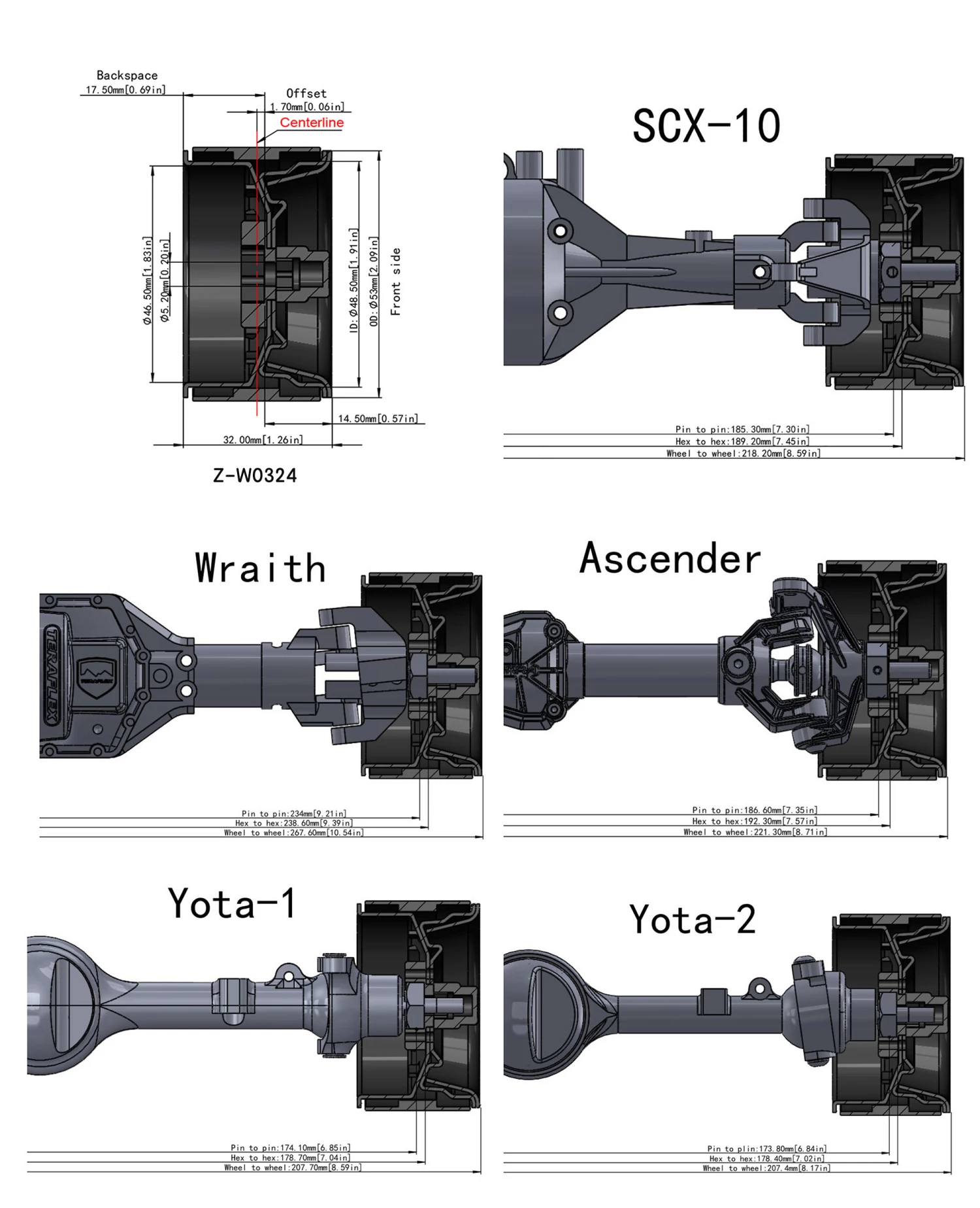Shown installed with RC4WD Milestar Patagonia M/T 1.9″ Scale Tires (Z-T0178) for example (Not Included)