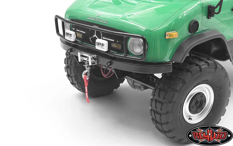 Shown installed on Axial 1/10 SCX10 II UMG10 with the IPF Lights of Ranch Steel Front Winch Bumper w/ IPF Lights for Axial 1/10 SCX10 II UMG10 (Black) (VVV-C0932), Fender Vents for Axial 1/10 SCX10 II UMG10 4WD Rock Crawler (VVV-C0824), Front Grille for Axial 1/10 SCX10 II UMG10 4WD Rock Crawler (VVV-C0823), Emblem Set for Axial 1/10 SCX10 II UMG10 4WD Rock Crawler (VVV-C0822), Turn Signal Set for Axial 1/10 SCX10 II UMG10 4WD Rock Crawler (VVV-C0825) and RC4WD 1/10 Mini Warn 9.5cti Winch (Z-S1571) for example (Not Included)