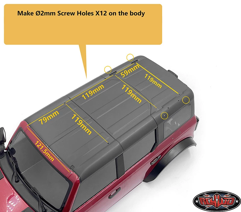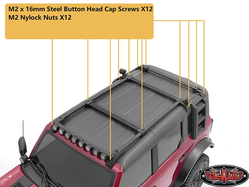 Shown installed on Traxxas TRX-4 2021 Ford Bronco with Grille Insert for Traxxas TRX-4 2021 Ford Bronco (Black) (VVV-C1155), Metal Side Sliders for Traxxas TRX-4 2021 Bronco (Style A) (VVV-C1232), Rook Metal Front Bumper with LED for Traxxas TRX-4 2021 Bronco (VVV-C1229), LED Roof Lateral Light for Traxxas TRX-4 2021 Bronco (VVV-C1244), LED A Pillar Front Light and Antenna for Traxxas TRX-4 2021 Bronco (VVV-C1247), Side Extension Ladder for Traxxas TRX-4 2021 Bronco (VVV-C1249), Roof Lateral Light for Traxxas TRX-4 2021 Bronco (VVV-C1243), LED Light Bar for Roof Rack and Traxxas TRX-4 2021 Bronco (Round) (VVV-C1241), Spare Wheel and Tire Holder W/ High Brake Light for Traxxas TRX-4 2021 Ford Bronco (VVV-C1158), Rear Window Hinges for Traxxas TRX-4 2021 Ford Bronco (VVV-C1157) and Rad 1.9″ Aluminum Internal Beadlock Wheels (Black) (VVV-C1225) for example (Not Included)