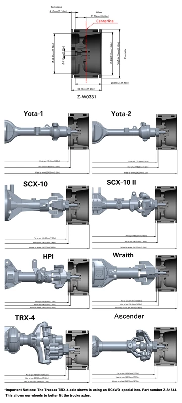 Shown installed with RC4WD BFGoodrich Mud-Terrain T/A KM2 1.9″ Scale Tires (Z-T0187) for example (Not Included)