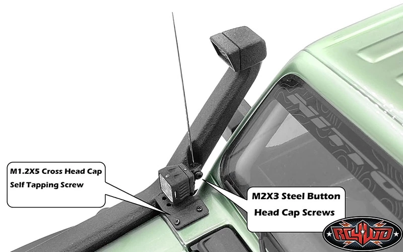 Snorkel w/ Flood Lights, LED Kit and Antenna for Axial 1/10 SCX10 III Jeep JLU Wrangler (VVV-C1074)